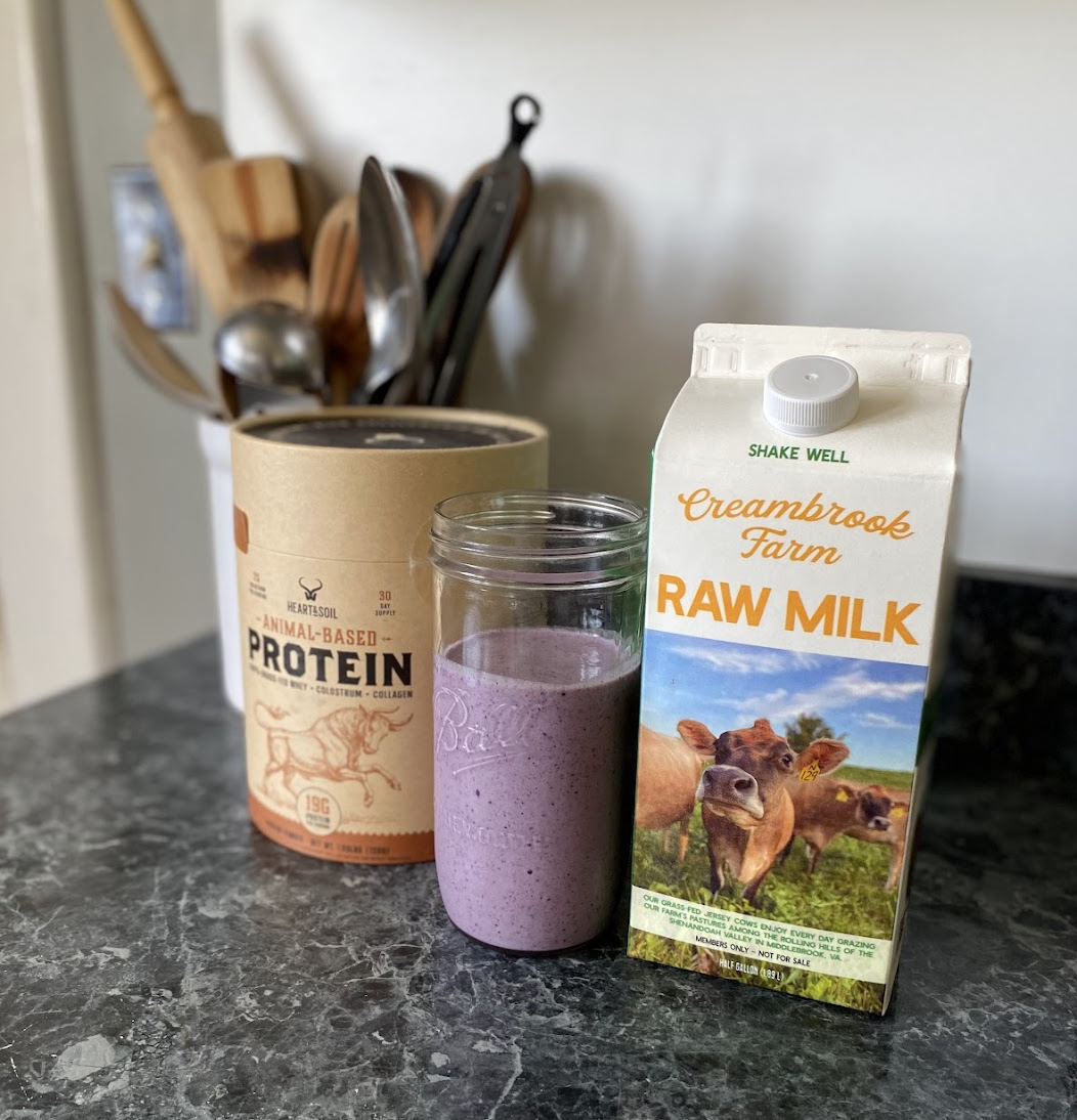 Blend raw milk with raw eggs (if that’s your thing), creatine, maple syrup, and vanilla for an incredible meal