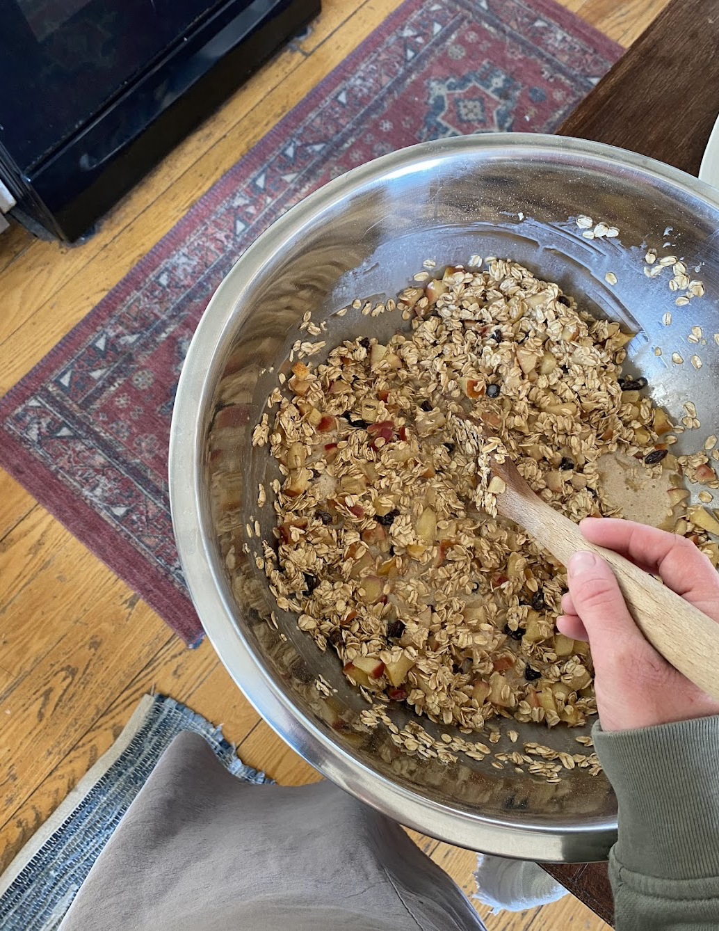 The cozy flavors, soft apples, raisins and hearty oatmeal made a filling breakfast that my family gobbled up.